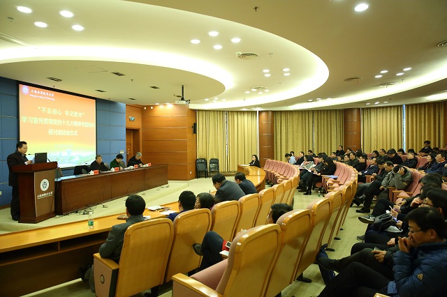 为深入学习宣传贯彻党的十九大精神,全面落实党的十九大作出的重大决策和战略部署,根据《市委办公厅转发<市委组织部关于在处级以上领导干部中开展党的十九大精神学习培训的实施意见>的通知》要求,学校举办了为期三天的处级干部“不忘初心 牢记使命”学习宣传贯彻党的十九大精神专题培训研讨班。中共上海市委宣传部副部长燕爽应邀莅校作党的十九大精神学习专题辅导报告。校党委书记刘宇陆,校党委副书记、校长陆靖,校党委副书记、纪委书记宋敏娟,校党委副书记、副校长张艳萍,副校长陈东辉,副校长张锁怀先后出席专题辅导报告、小组讨论、开班及结业典礼等活动。